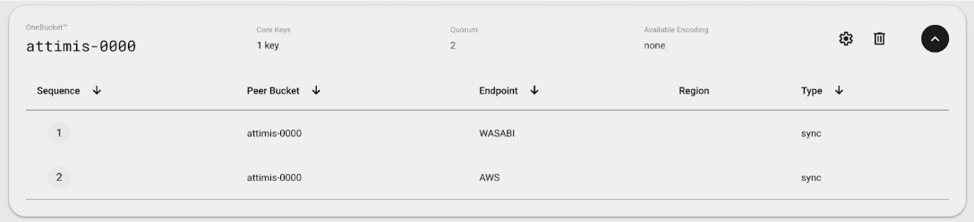 If we inspect the Attimis console, we can see that the bucket attimis-0000 is mapped to multiple storage endpoints. This means the compute layer only interacts with a single endpoint, while Attimis manages where the data is physically stored.
